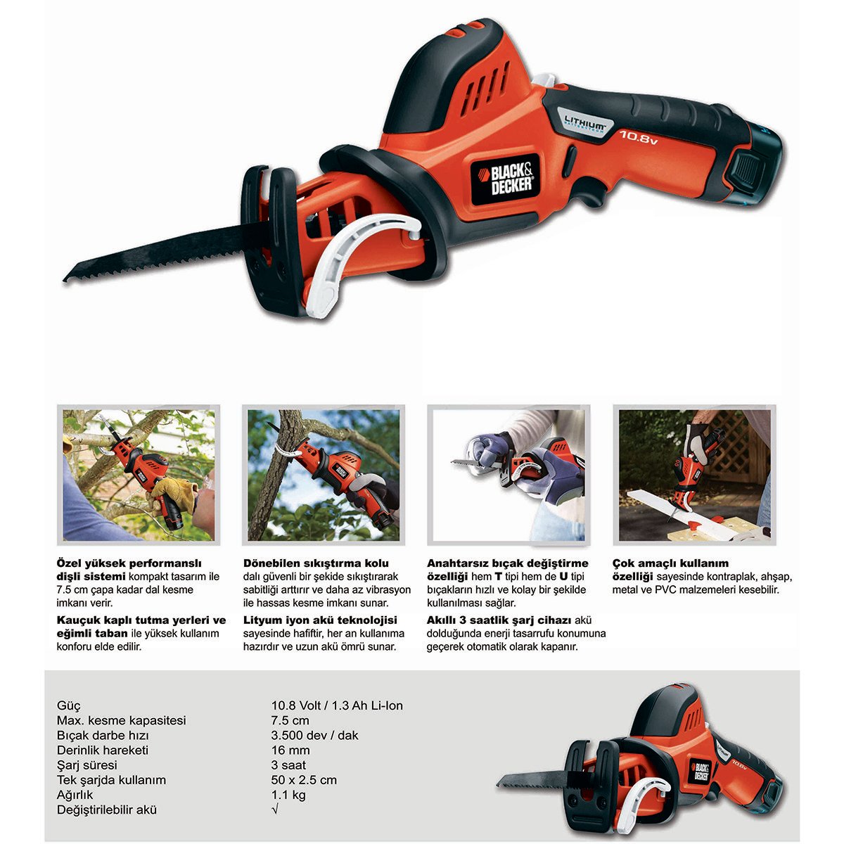 Black+Decker GKC108X 10.8V 1.3Ah Li-ion Akülü Şarjlı Dal Budama Makinesi
